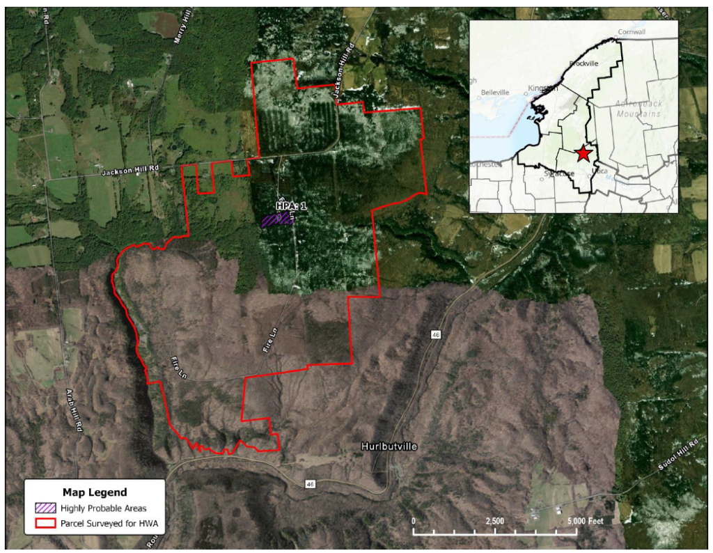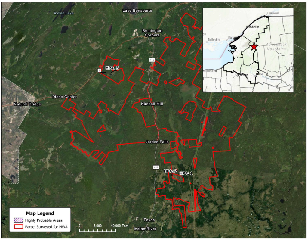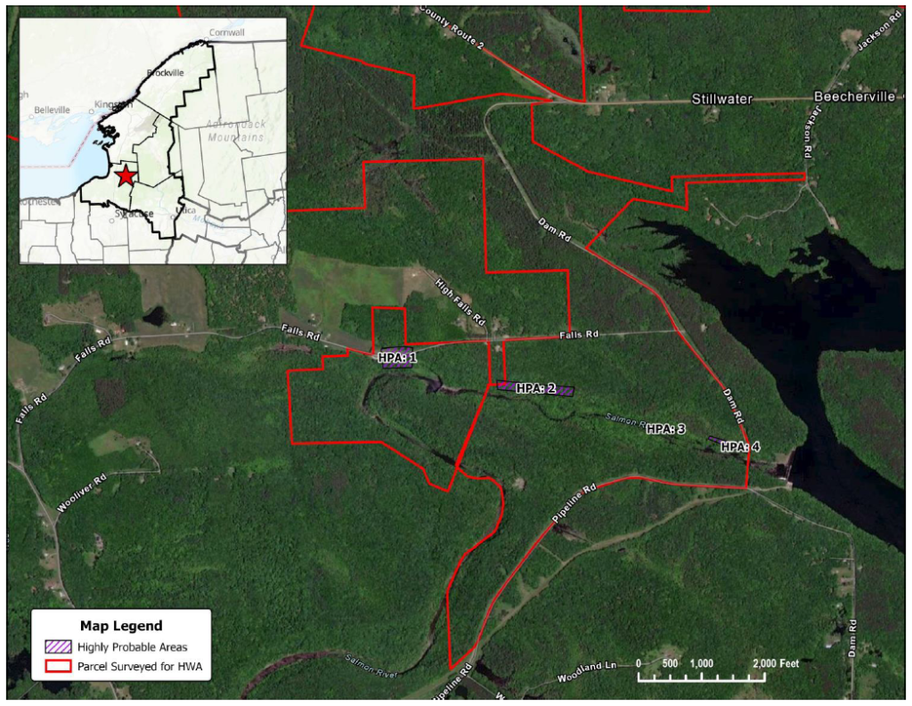 The Hemlock Woolly Adelgid (HWA) survey of the SLELO-PRISM region was conducted from January 2021 to April 2021. Several Highly Probable Areas (HPAs) within the 13 Priority Conservation Areas (PCAs) were surveyed by Brittney Rogers, Robert Smith, Megan Pistolese, and Frank Williams for signs and symptoms of Hemlock Woolly Adelgid (HWA).