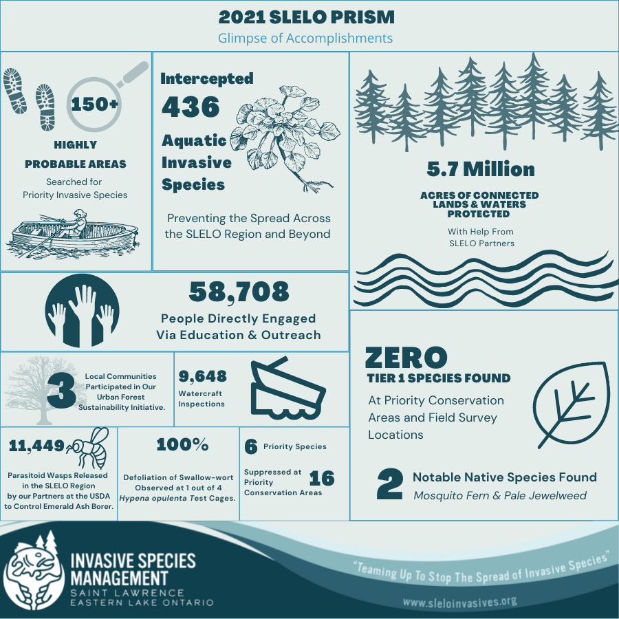 By working together, this past year has brought many successes in our efforts to protect our lands and waters from the threat of invasive species. Even with pandemic protocols still in place, Team SLELO and our partners made many accomplishments in 2021 that we wanted to share with you!