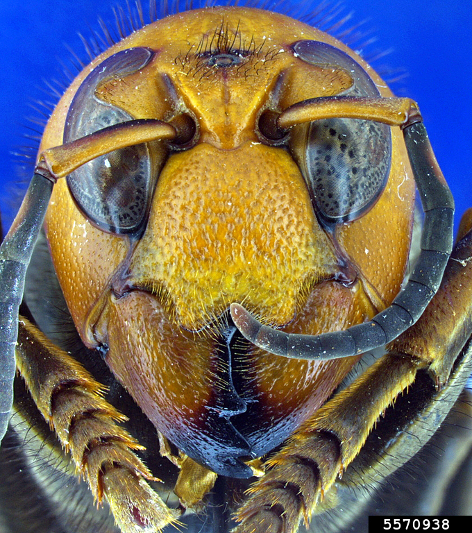 Featured Image: Closeup image of Vespa mandarinia ssp. japonica Queen. Note the large mandibles which are used to grasp, crush, or cut food, or to defend against predators or rivals. Photo by Allan Smith-Pardo, USDA APHIS, Bugwood.org