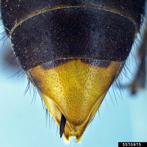Closeup image of Vespa mandarinia ssp. magnifica adult worker and large 6 mm long stinger, which can deliver a large dose of venom. Photo by Allan Smith-Pardo, USDA APHIS, Bugwood.org