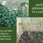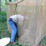 For both black and pale swallowwort, the approved biocontrol to use is Hypena opulenta, a moth from Ukraine, which feeds exclusively on the leaves of these invasive species. We set up four Hypena cages last year with the greatest success in emergence and release occurring at Wehle State Park. We intend on setting up cages again this year, most likely at Robert Wehle State Park and Grenadier Island, and may set up an additional 1 or 2 cages. View the results of this release.