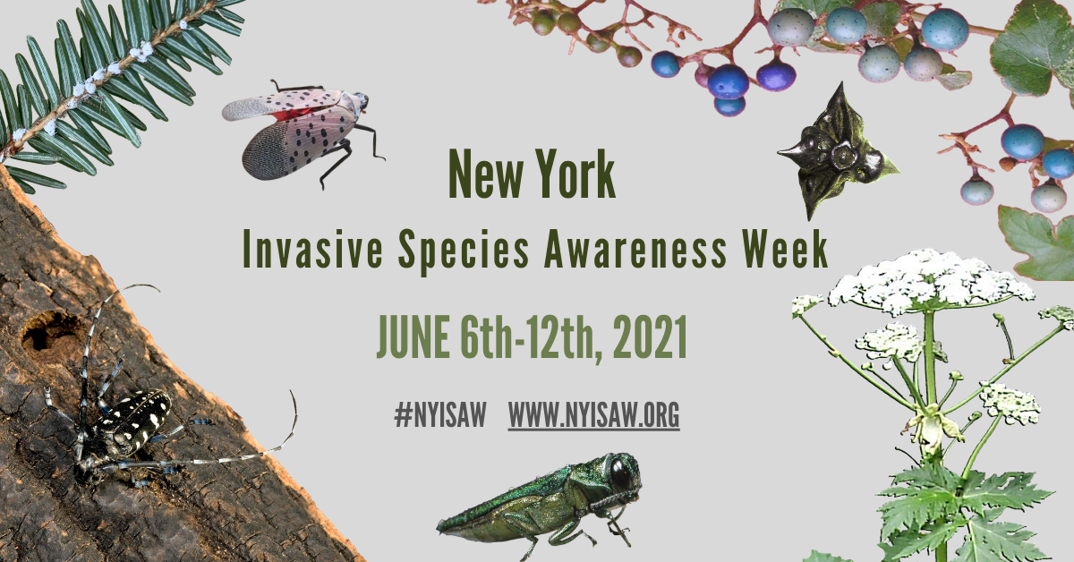 Learn how you can protect your lands and waters from the impacts of invasive species during the 8th annual New York Invasive Species Awareness Week. June 6th through the 12th virtual engagements, COVID compliant events, social media challenges and a family friendly scavenger hunt will be held across NYS.