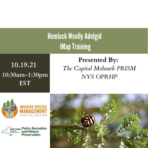Resource Managers, Friends Groups, and Citizen Scientists; Please join our partners at the Capital Region PRISM and NYS Parks for training on identifying and reporting Hemlock Woolly Adelgid using iMapInvasives. Participants will have the opportunity to survey an area for Hemlock Woolly Adelgid at Grafton Lakes State Park.
