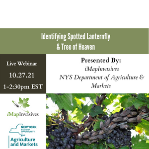 Attend this virtual event hosted by NY iMapInvasives and the NYS Department of Agriculture and Markets to learn more about SLF, TOH, and how you can participate in this effort. Visit www.nyimapinvasives.org/slf for more information and to claim a grid square on the map to look for these species out in the field and report your findings to iMapInvasives.