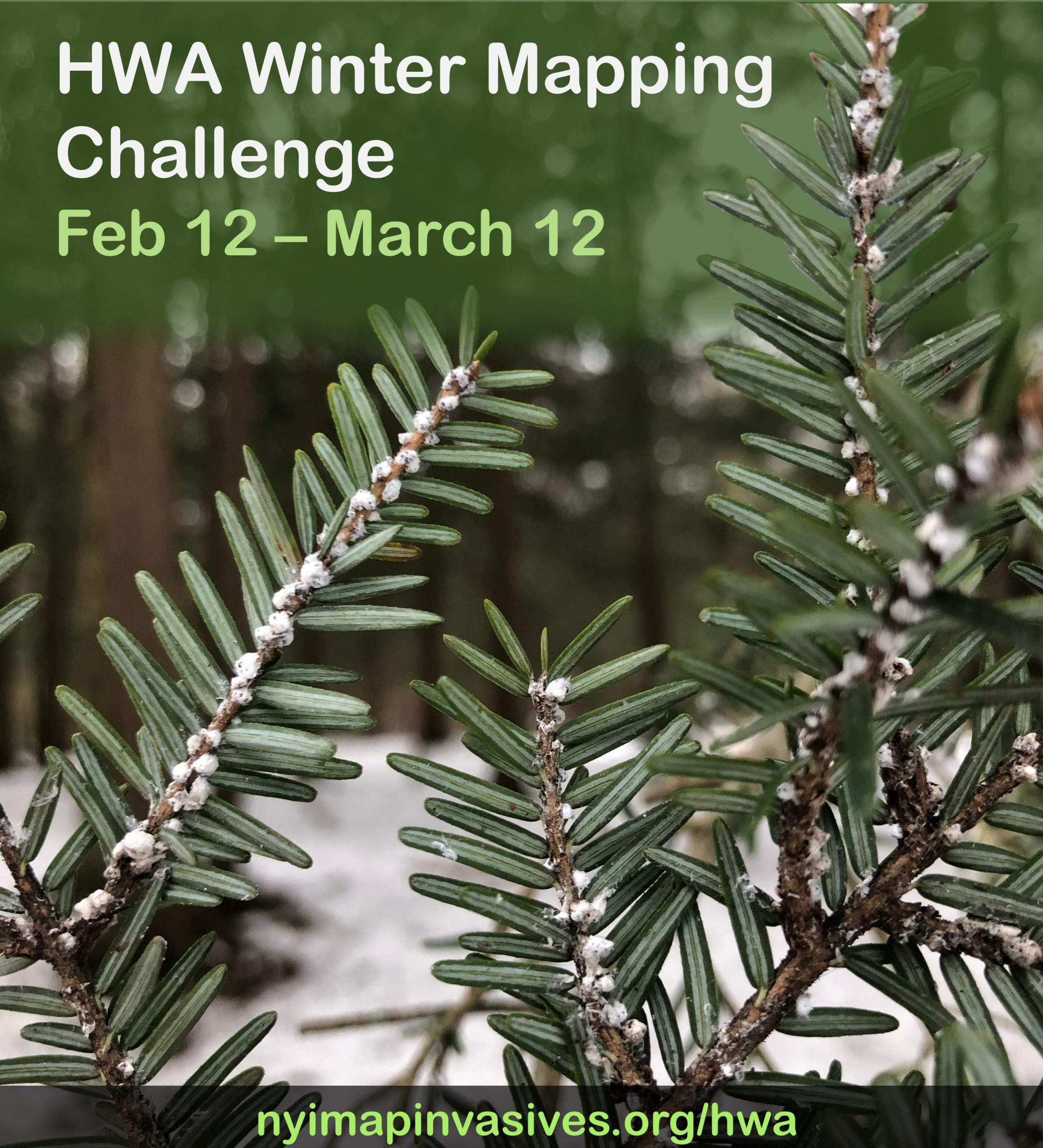 From Feb 12 – March 12, NY iMapInvasives and the NYS Hemlock Initiative are hosting NY’s first statewide Winter Mapping Challenge. Join the challenge to help monitor this invasive species and compete to win a prize!