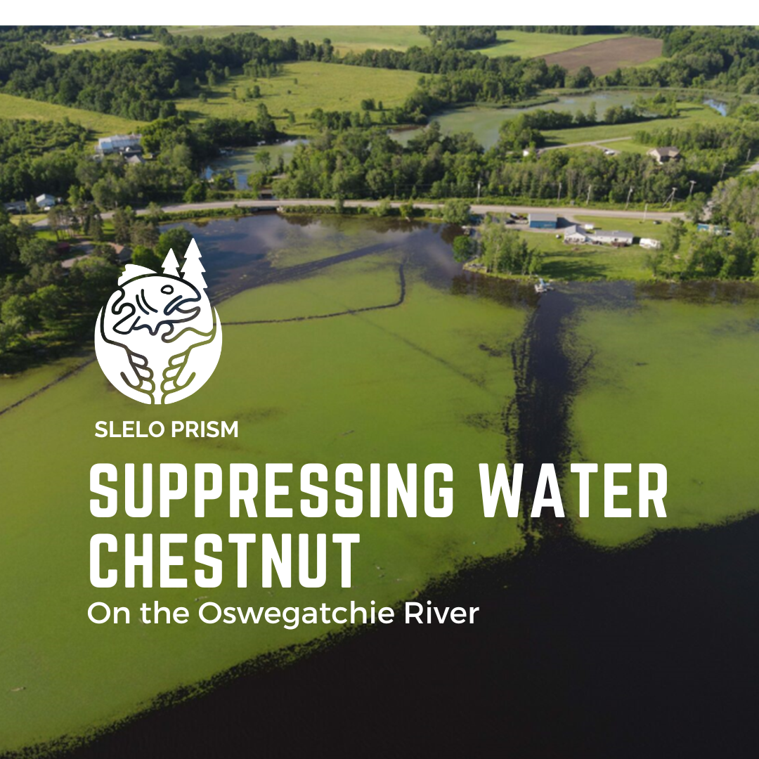 St. Lawrence University received funding from the NYS DEC, as well as a grant from NYPA’s SLRREF program, to support a multi-year suppression effort for a large water chestnut population (40+ acres) on the Oswegatchie River near the Village of Heuvelton, NY. In the summer of 2024, it was estimated that 30 million water chestnut plants were removed from this population using mechanical and manual methods. Over the next few years, there are plans to continue mechanical and manual removal efforts on the River. These efforts aim to aid the reestablishment of native vegetation and reduce the spread of this invasive species downstream into Black Lake and the St. Lawrence River—two ecologically and economically important waterbodies.